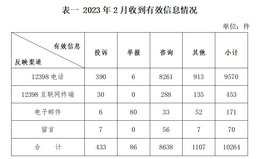 表三 2023年2月有效信息及投訴舉報(bào)排名前10位情況