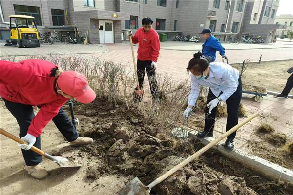 物業(yè)公司員工栽種綠化樹苗